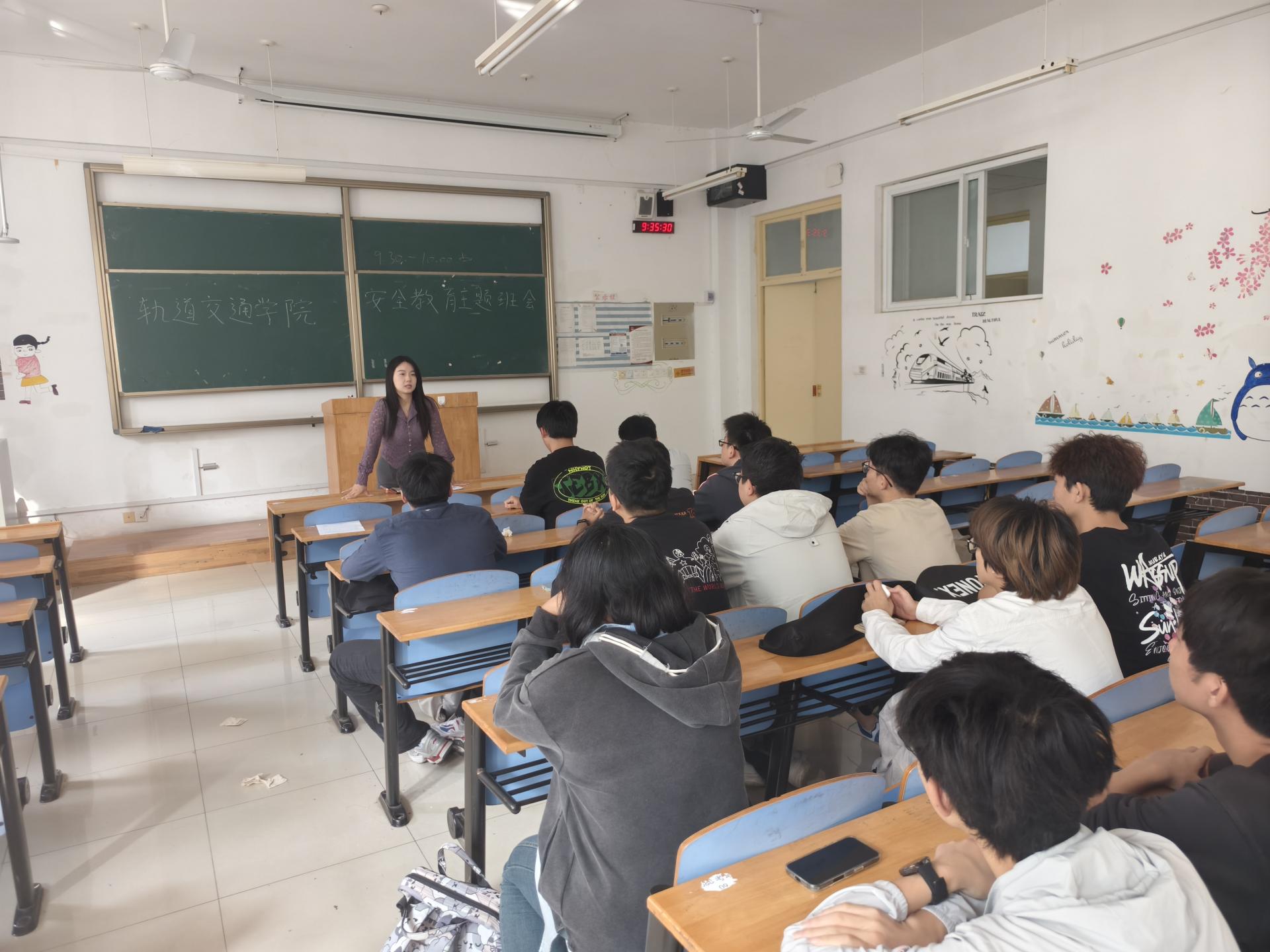 为全面落实学校安全稳定工作会议精神,切实保障学生人身、财产安全,9 月 28 日,轨道交通学院组织安排各班级召开安全教育主题班会,班主任、辅导员主持讲解。