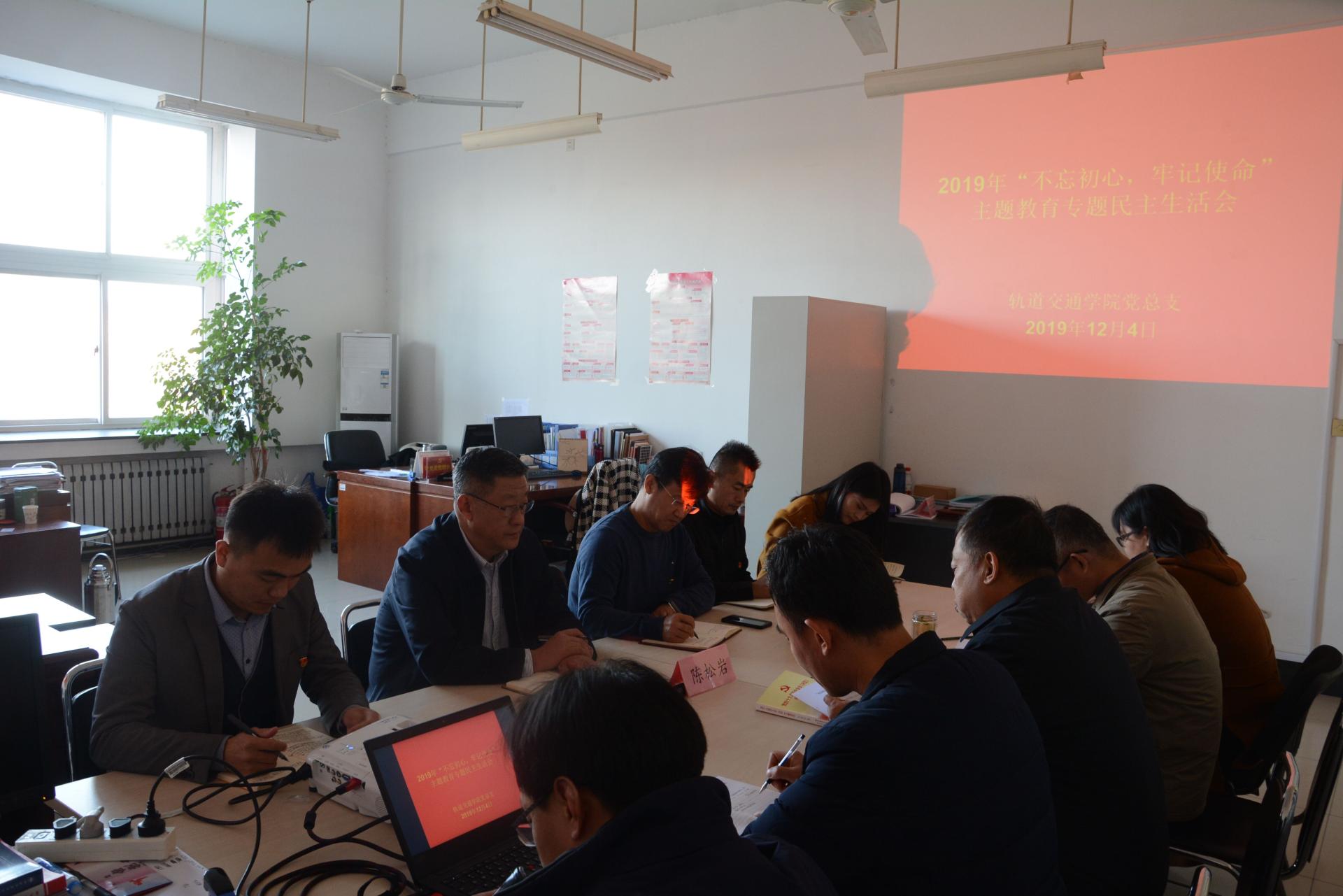 根据学校党委对召开“不忘初心、牢记使命”专题民主生活会的相关要求,12月4日下午,轨道交通学院党总支在1A410召开“不忘初心、牢记使命”主题教育专题民主生活会。学校党委副书记、院长陈松岩,组织部部长田杰昌到会督导。学院党总支成员参加会议。会议由学院党总支书记宿林林主持。