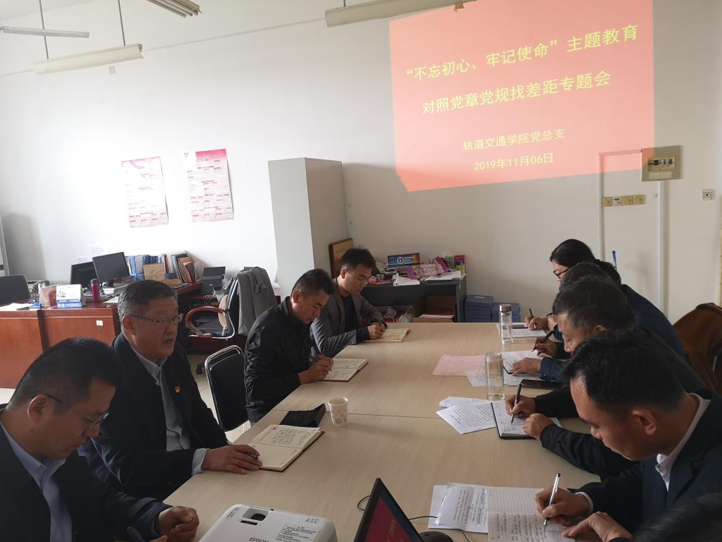 11月6日上午,轨道交通学院党总支在1A410召开“不忘初心、牢记使命”主题教育对照党章党规找差距专题会议,学校党委副书记、院长陈松岩到会督导。轨道交通学院班子成员、各党支部书记参加会议,会议由学院党总支书记宿林林主持。