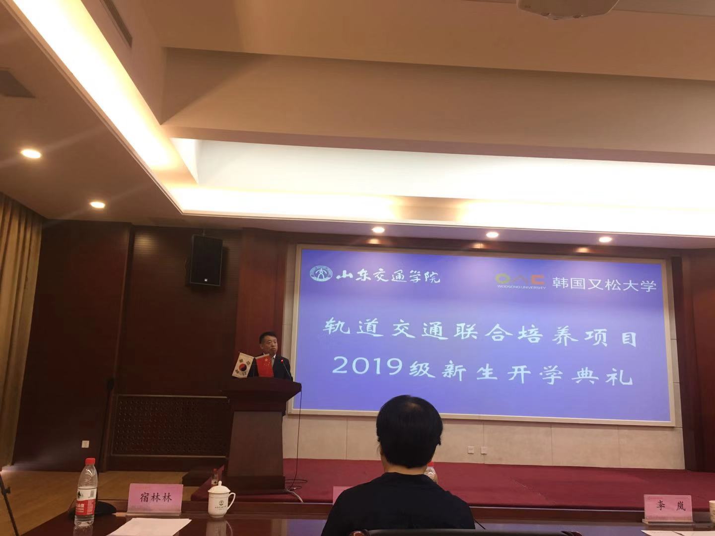 9月10日上午,轨道交通学院在长清校区工程训练中心H座410隆重举行山东交通学院——韩国又松大学轨道交通联合培养项目2019级新生开学典礼。