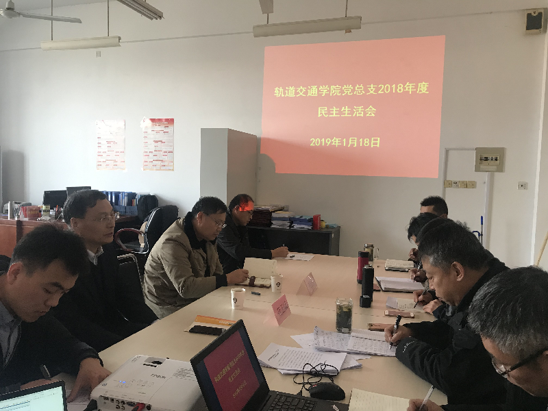 1月18日,轨道交通学院党总支2018年度民主生活会在1A410召开,学院总支成员出席了会议,学校党委委员、纪委书记范玉斌,校纪委副书记刘廷新到会进行了督导和点评。