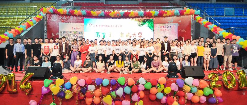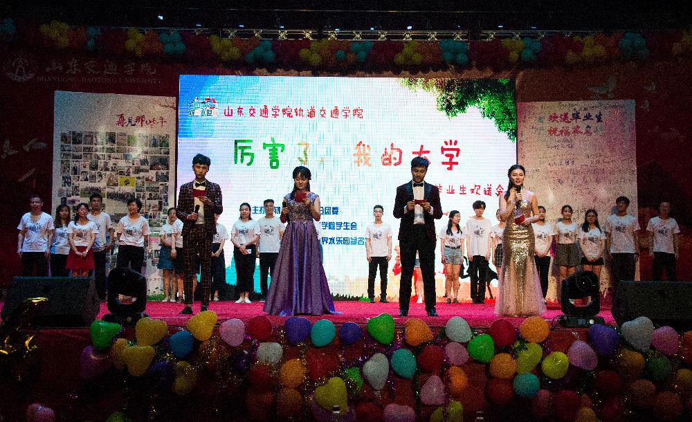 2018年6月19日晚,轨道交通学院“厉害了,我的大学”2018届毕业生欢送晚会在长清校区文体馆隆重举行。青岛地铁培训管理部经理常淼、青岛地铁党群工作部徐翔、青岛地铁培训管理部王洪鑫、轨道交通学院党总支书记宿林林、轨道交通学院院长阮久宏、轨道交通学院副院长张良智、轨道交通学院团总支书记张秋红、各级辅导员老师及教师代表、全体毕业生参加了本次晚会。
