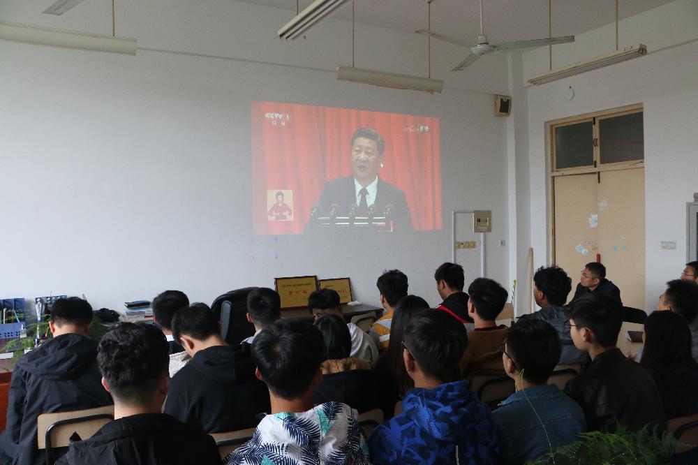 2017年10月18日,轨道交通学院党总支组织师生党员及入党积极分子在1A410室集中收看了党的十九大实况转播,聆听了习近平总书记十九大报告。