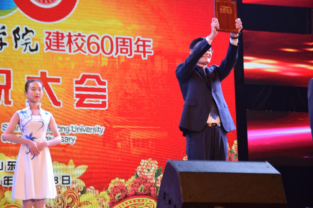 校友代表,蓝海建设集团有限公司董事长原山东交通学院路桥九一级校友刘卫峰在讲话中谈到了他的大学生活,并感慨母校的巨大变化,在为母校献上祝福之余,慷慨捐赠300万,设立蓝海基金会用于奖励优秀学生和教师。优秀教师代表和学生代表也分别发表了讲话,为母校的六十华诞献上祝福。