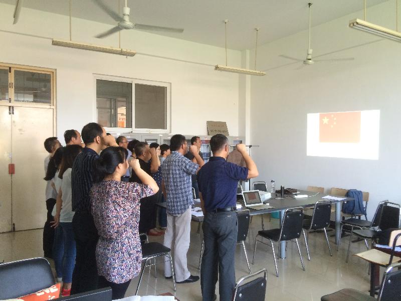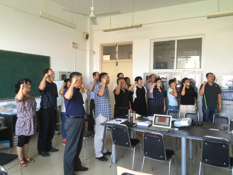 为弘扬和践行社会主义核心价值观,加强教师师德建设,增强教师教书育人的责任感、使命感,落实好《山东省教育厅关于做好庆祝2016年教师节有关工作的通知》要求,我院于9月7日下午在学院办公室组织开展了宣誓活动,在学院院长阮久宏的带领下,全体教师在国旗下进行了庄严宣誓。