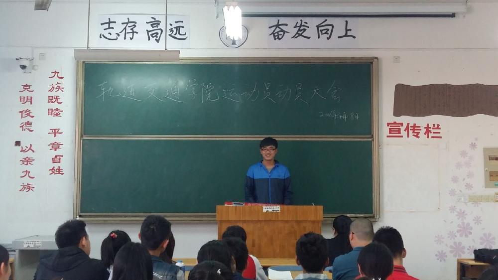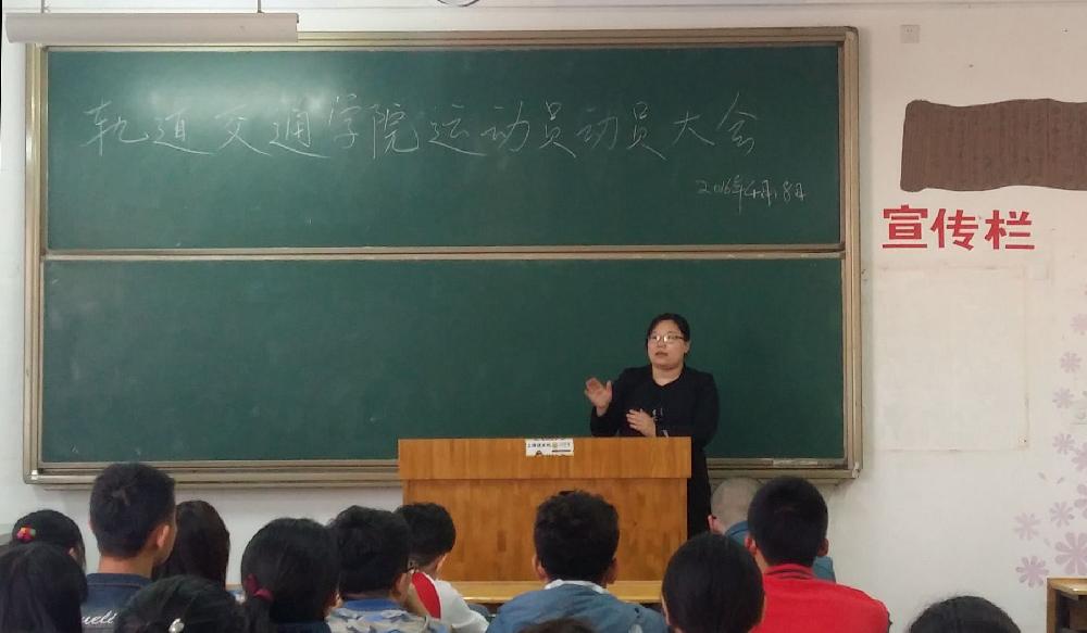 山东交通学院2016年田径运动会将于4月28日、29日在长清校区举行。在运动会即将举行之际,轨道交通院于4月18日下午五点在长清校区1号教学楼1A405举行了轨道交通学院运动员动员大会。陈聪聪老师向我院全体运动员及学生会成员做了赛前动员。