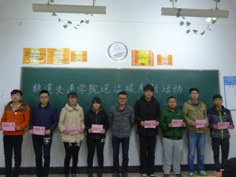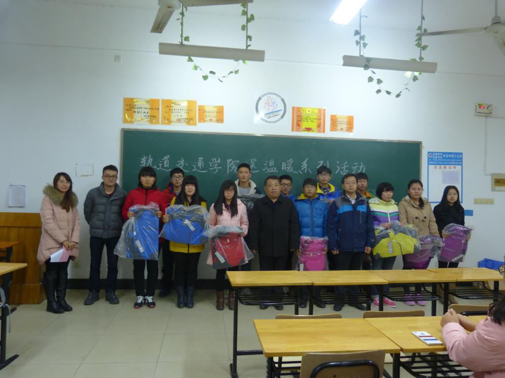 2015年12月22日下午,轨道交通学院送温暖系列活动在长清校区一号教学楼A512成功举办。出席此次活动的有轨道交通学院党总支书记宿林林、办公室主任刘建磊、辅导员宋亚威、李璐。