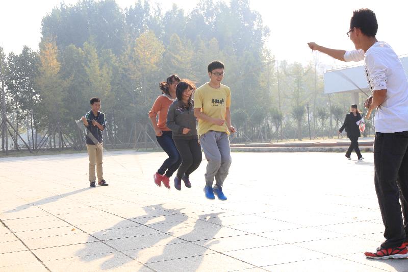 跳大绳的同学们穿梭其间,精神抖擞,身轻如燕,动作敏捷,全身心地投入比赛。 挥动的长绳如银蛇飞舞,跳动的学生如彩蝶纷飞。 同学们坚持不懈的努力使得我们学院在跳大绳比赛中取得了第三名的好成绩。