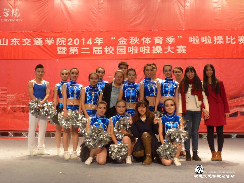 举行“金秋体育季”啦啦操比赛。本次啦啦操比赛评委由比赛负责人法惠玉老师、校体育部老师及校学生会成员组成。本次比赛的参赛队伍分别来自轨道交通学院、外国语学院、
