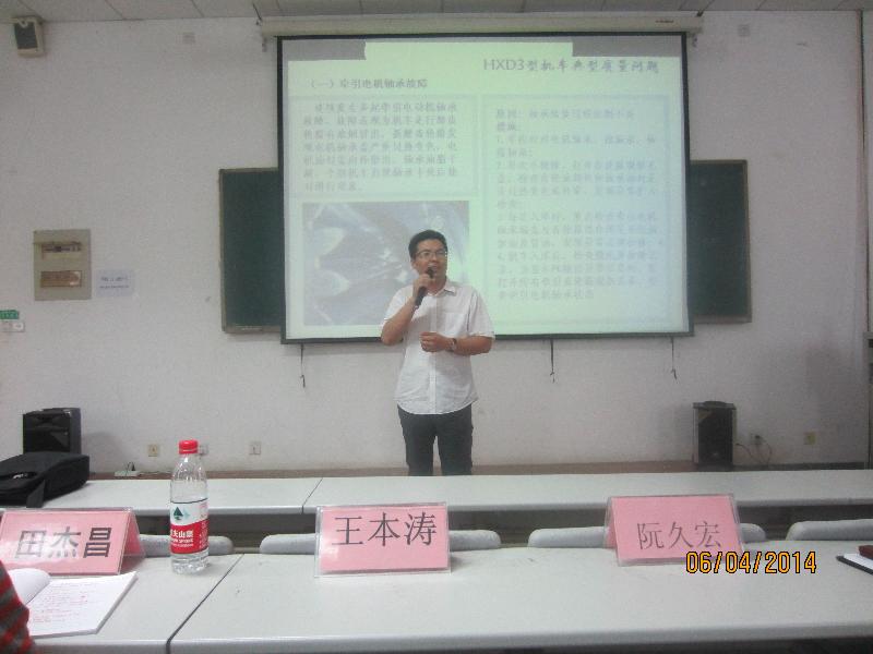 型大功率交流传动电力机车相关知识及轨道交通类专业就业方向等。轨道交通学院院长阮久宏、辅导员陈聪聪、教导主任刘建磊、尹磊和张立东老师以及轨道交通学院全体学生参加了此次讲座。
