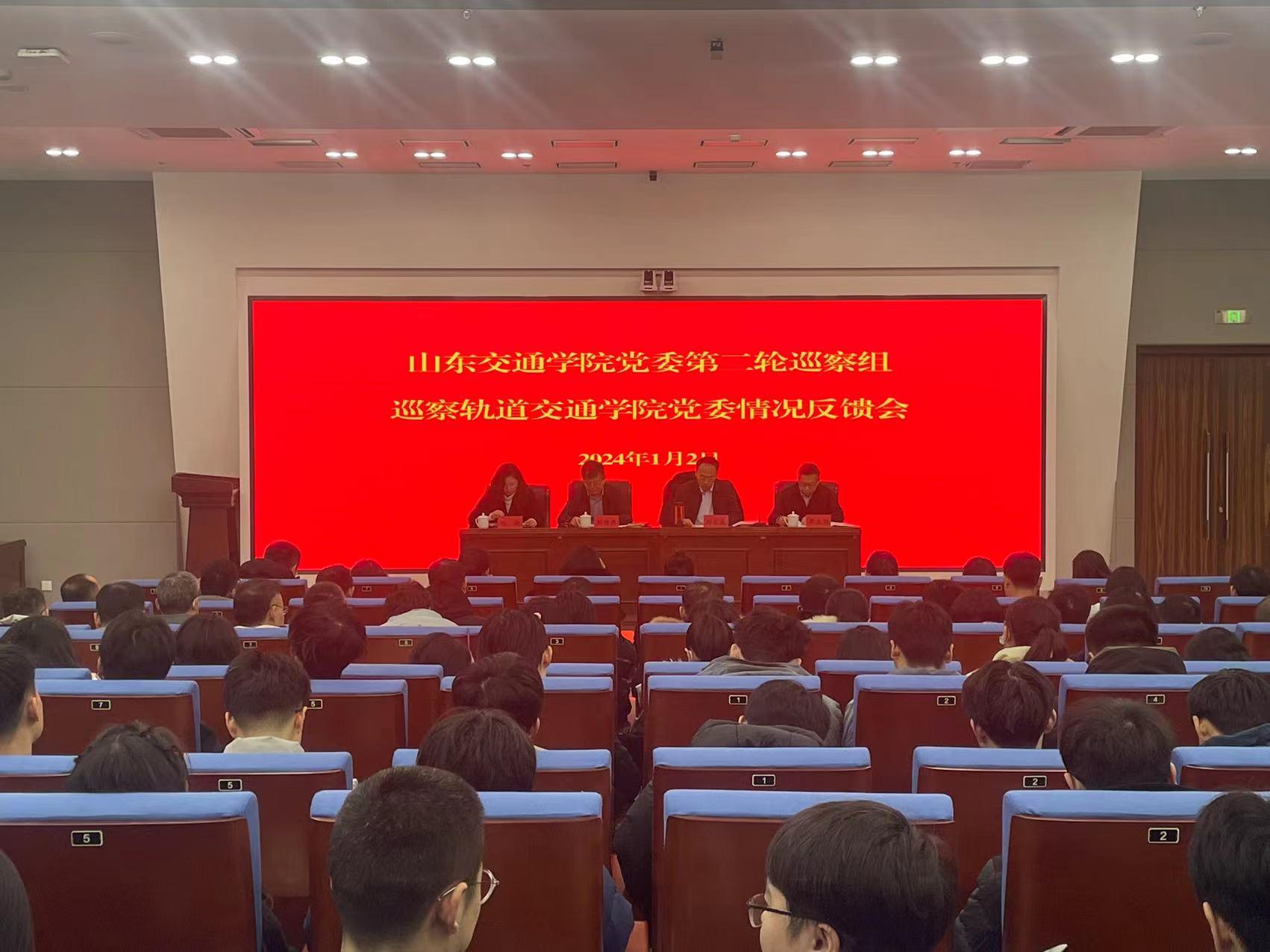 党委巡察工作领导小组成员、党委巡察工作办公室主任,党委第二轮巡察组全体成员,轨道交通学院党政领导、全体教职工、学生党员代表参加了会议。