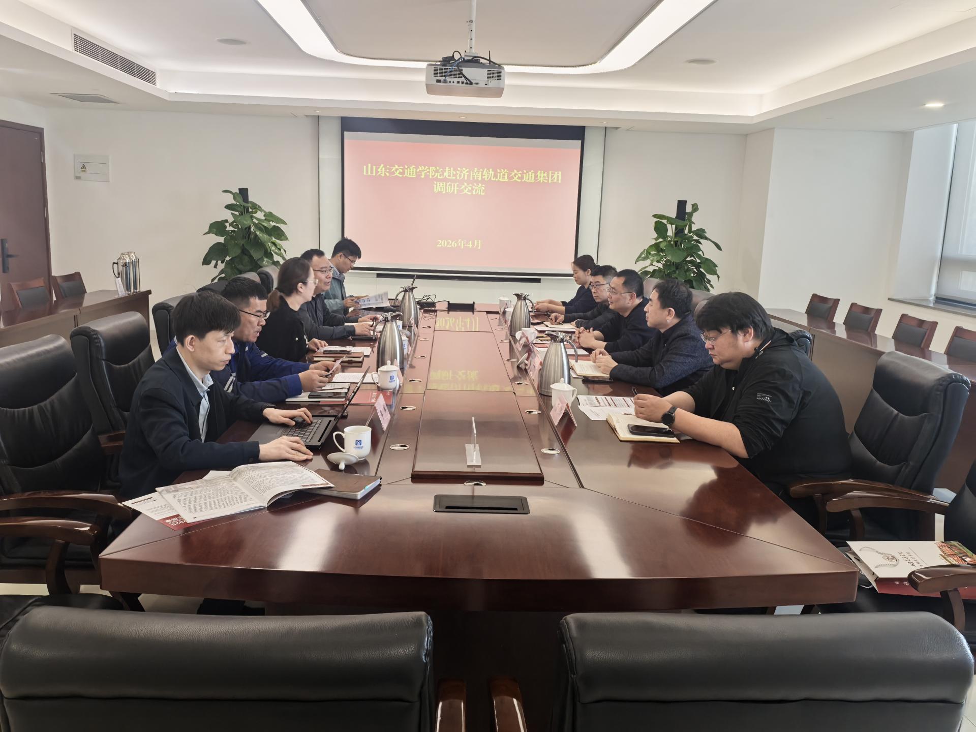 4月16日,山东交通学院轨道交通学院院长潘为刚、继续教育学院院长王德利带队赴济南轨道交通集团公司开展访企调研活动,集团党群工作部部长赵白雪、科研管理部部长门燕青参加座谈。围绕科研合作、平台建设、人才培养、继续教育等多方面开展深入研讨。